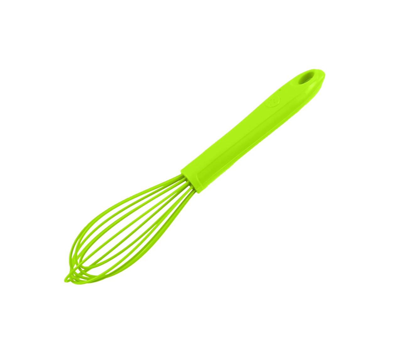 Der Schneebesen ist weich und flexibel und damit leicht in der Handhabung. Am Stielende des Schwingbesens befindet sich eine Öffnung zum Anhängen an eine Küchenleiste. Es gibt ihn in verschiedenen Farben.