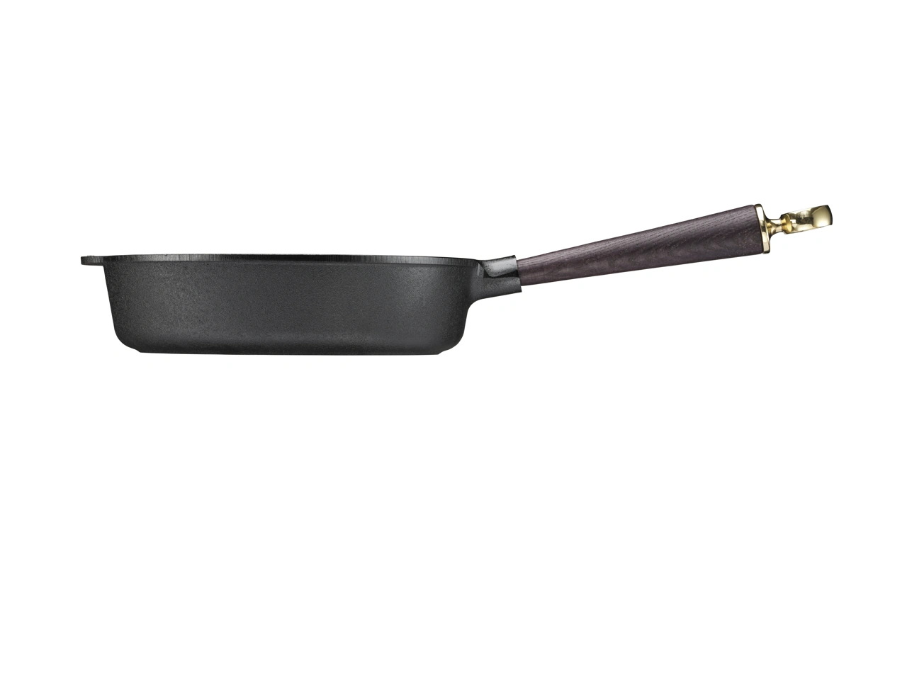 Diese Schmorpfanne 24 cm mit schwarzem Holzgriff bietet beispielsweise für größere Mengen Fleisch genügend Platz. Durch den sehr hohen Rand ist die Pfanne auch perfekt für alle Saucengerichte. In der Skeppshult Gusseisen Pfanne erreichen Sie ein sehr geschmacksintensives Bratergebnis. Speisen werden außen schön kross und bleiben innen saftig. Diese Sonderedition der Skeppshult Pfanne mit schwarzem Griff aus Eschenholz mit Messingknauf ist limitiert und nur erhältlich, solange der Vorrat reicht.