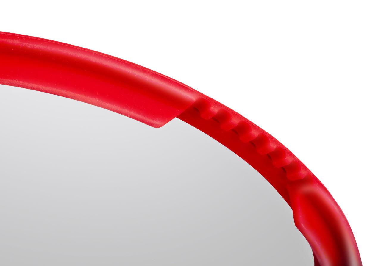 Hergestellt ist der Spezialdeckel aus extra klarem Sicherheitsglas. Der ergonomische Deckelknopf ist mit einem Dauerentlüftungsventil versehen. Dies verhindert, dass der Deckel beim Garen vibriert. Am Rand befindet sich ein roter Silikonring. Er erhöht die Stoßfestigkeit des Deckels und sorgt für einen sicheren Sitz.