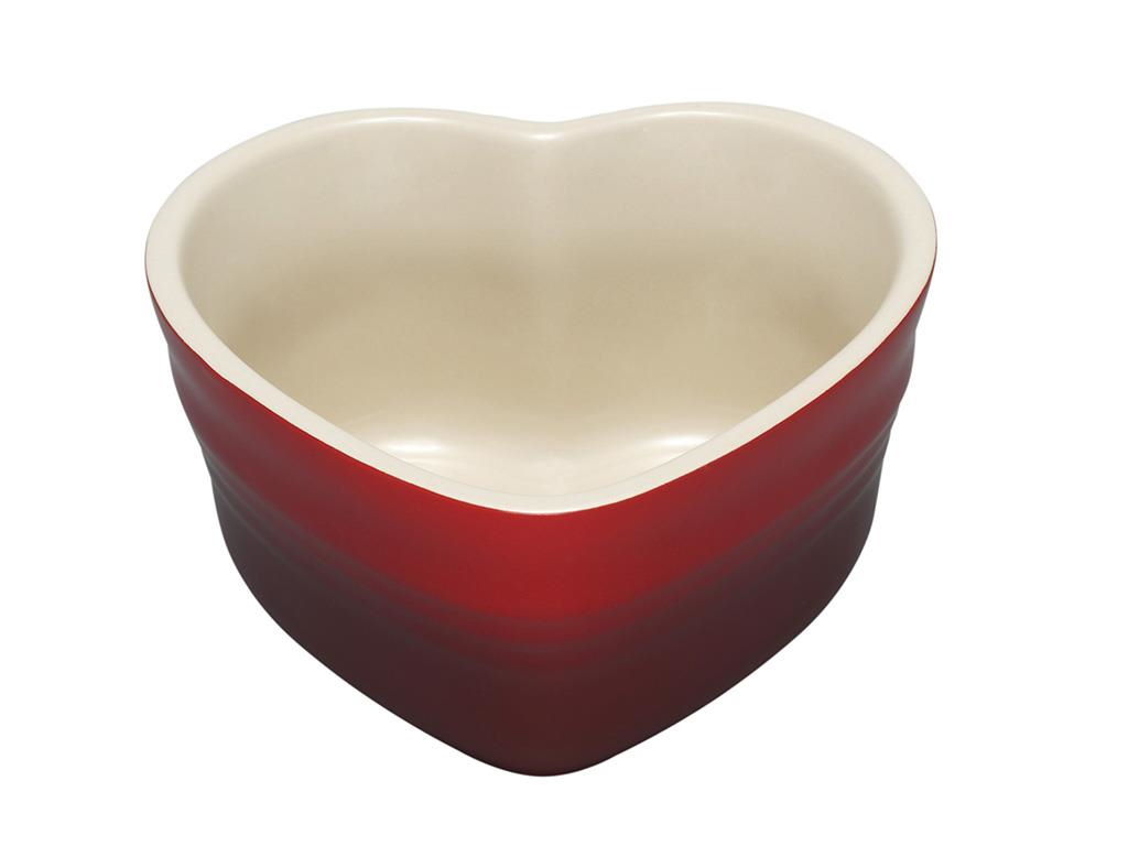 Kleines Le Creuset Herzförmchen aus Steinzeug zum Servieren, Backen, Überbacken, Gratinieren und Einfrieren.