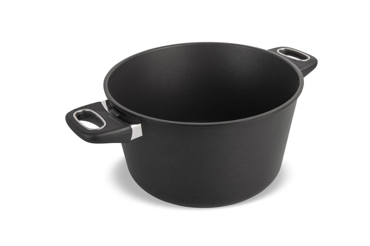 Der Körper der Pfannen, Töpfe, Bräter und Woks von Gastrolux wird in einem besonders hochwertigen Verfahren hergestellt. Das Aluguss entsteht in einem Squeeze-Casting-Verfahren. Jedes Teil wird per Hand gegossen und dann mit 200 Tonnen pro Quadratzentimeter gepresst. Dadurch wird die beste Wärmeleitung erreicht. Braten und Kochen wird nicht nur schneller, sondern auch günstiger!