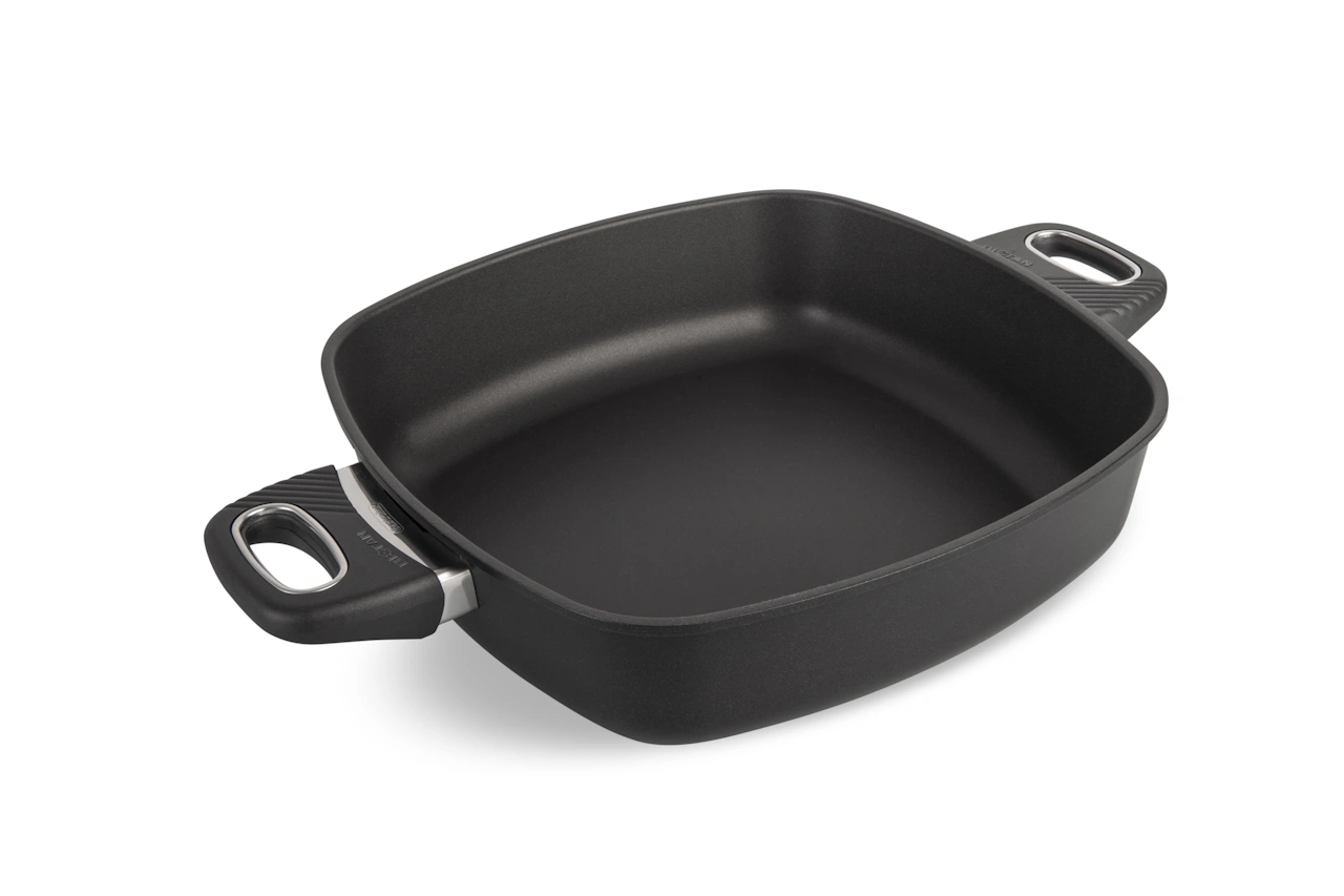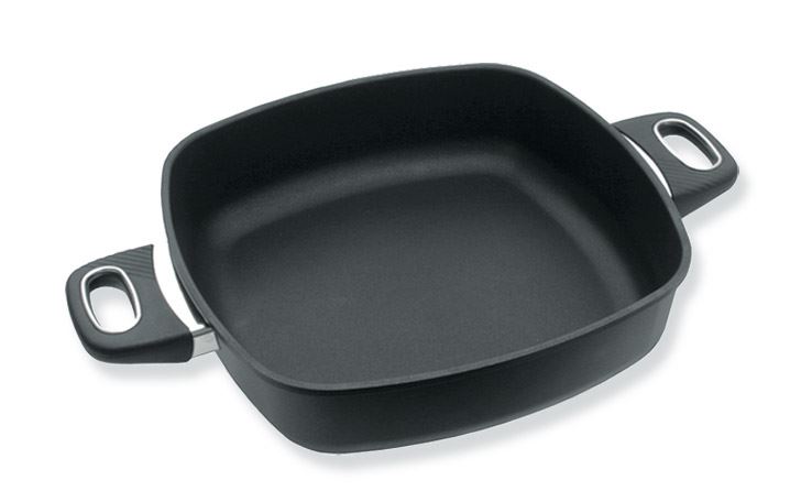 Hohe Aluguss Antihaft Viereckpfanne zum fettarmen Braten und Schmoren.