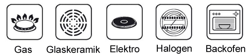 - für Glaskeramik, Elektro, Gas und Halogen Herde