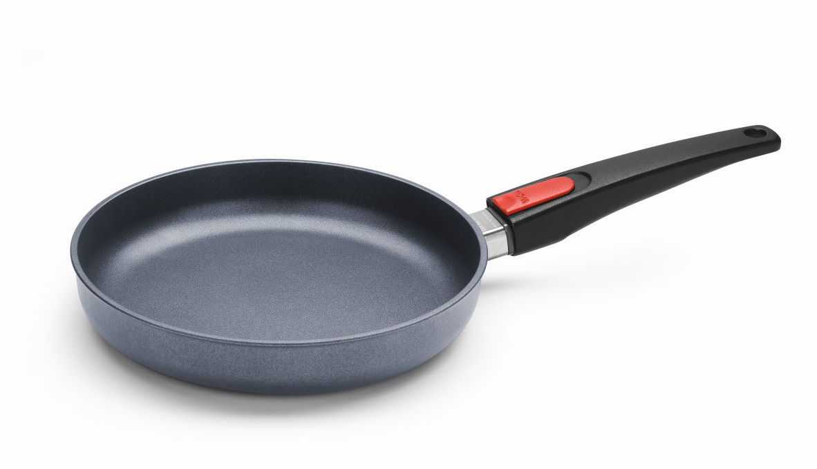 Serienmäßig sind diese Pfannen mit einem leicht abnehmbaren Pfannengriff ausgestattet. Ohne Griff sind die Pfannen bis 250° backofenfest und lassen sich platzsparend aufbewahren. Geeignet ist die Woll Pfanne für alle Herdarten inklusive Induktion.