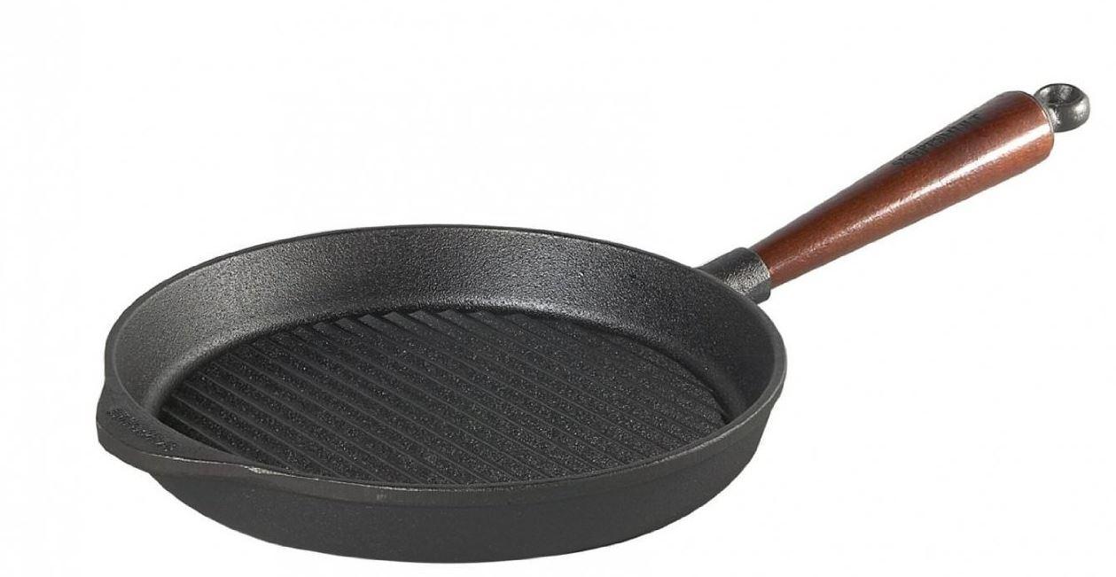 Zu den besten Grillpfannen gehören emaillierte Pfannen von Le Creuset und unbeschichtete Modelle von Skeppshult. Das typische Einbrennen ist bei Skeppshult Grillpfannen nicht nötig. Nach den ersten Bratvorgängen bekommen die Pfannen eine natürliche Antihaftbeschichtung und geben Fleisch, Gemüse und Fisch einen besonders intensiven und leckeren Grillgeschmack.