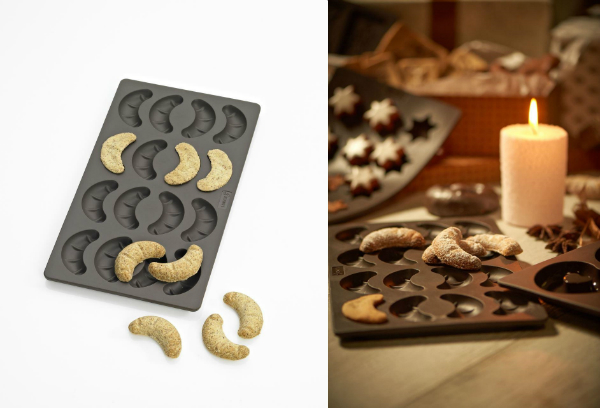 Silikonformen, wie sie beispielsweise von der Firma Kaiser angeboten werden, lassen sich einfach platzsparend aufbewahren – das Material ist schließlich flexibel.