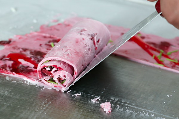 Auch wenn es jetzt draußen noch kalt und trostlos zugeht, schon jetzt dürfen wir uns auf wärmere Zeiten mit zartem Rolled Ice Cream freuen, ein weiterer außergewöhnlicher Food Trends 2019! Die von den thailändischen Straßenmärkten stammende eisige Delikatesse wird vor den Augen des Kunden auf einer kalten Platte aus sahnigem Eis und verschiedenen frei wählbaren Toppings zubereitet. Die frischen Zutaten werden vermischt und mit einem kleinen Spachtel zu hauchzarten Röllchen ausgeformt. Das Ergebnis sieht nicht nur fantastisch aus – es ist auch noch unglaublich lecker!