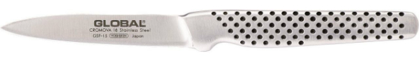 Wer es etwas handlicher mag, der greift zum Schälen, Putzen oder Schneiden von Obst oder Gemüse auf das GSF Schälmesser 8 cm, ein typisches Gemüsemesser, zurück. Mit seiner kurzen Klinge und nur 60 Gramm ist es ein echtes Leichtgewicht, selbst unter Gemüsemessern. Zum anschließenden Tournieren ist speziell das Global GSF Tourniermesser 6 cm mit seiner kleinen, gebogenen Klinge gemacht.