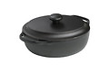 Das Material nimmt Wärme nur langsam auf, gibt sie dafür aber auch besonders gleichmäßig wieder ab. Das kommt besonders dem sorgfältigen Schmoren und Braten zu Gute. Beim separaten Aufheizen des Deckels vor dem Auflegen lässt sich zusätzlich eine starke Oberhitze erzeugen.